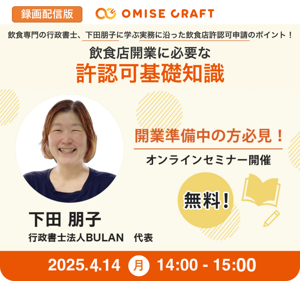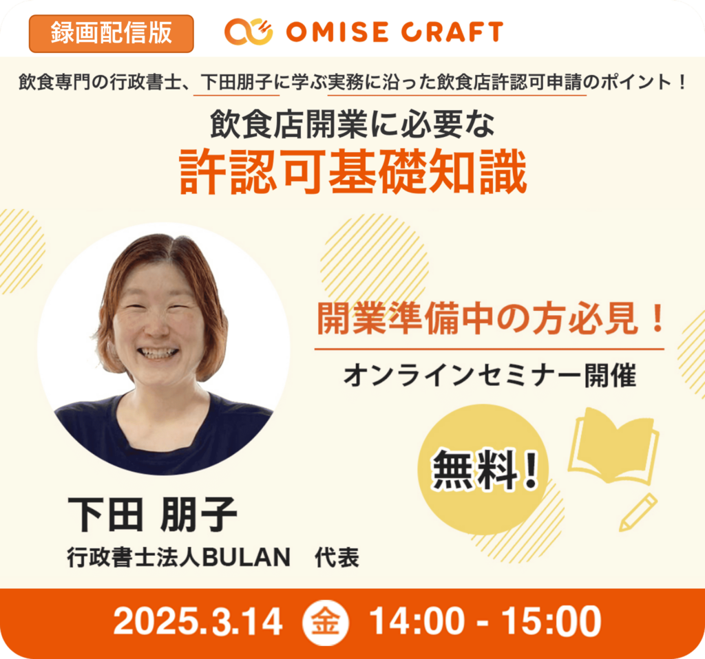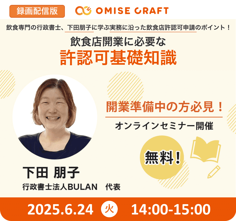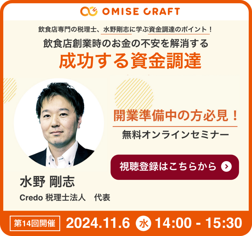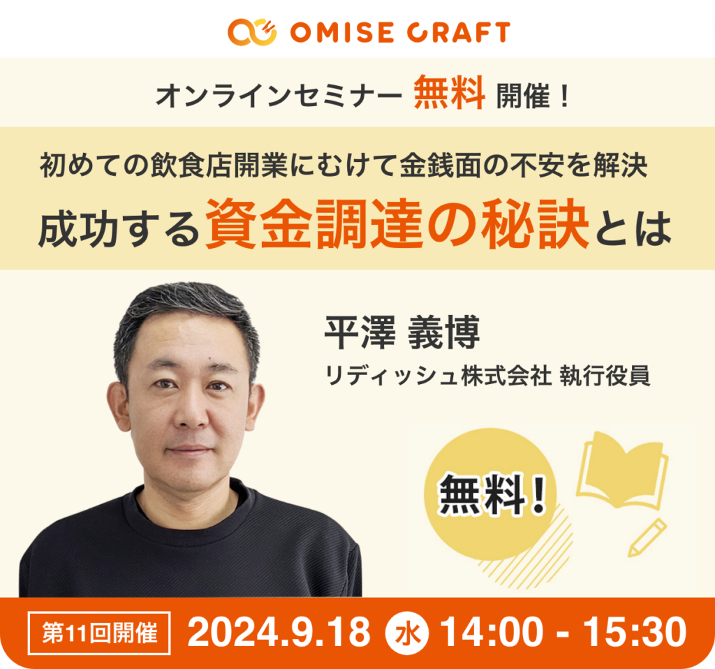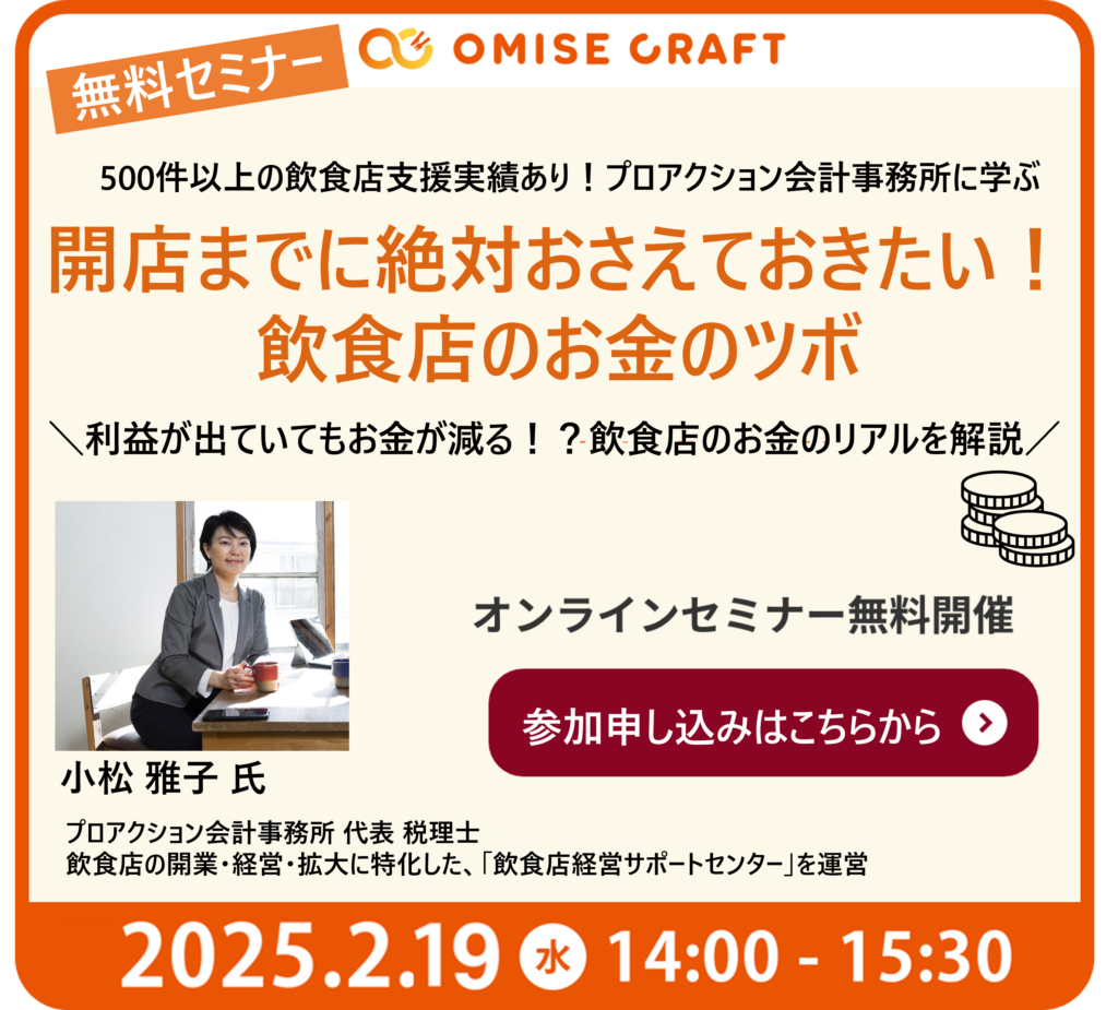 オミセクラフトでは飲食店開業に役立つセミナーを随時開催中!お申込みをお待ちしております。