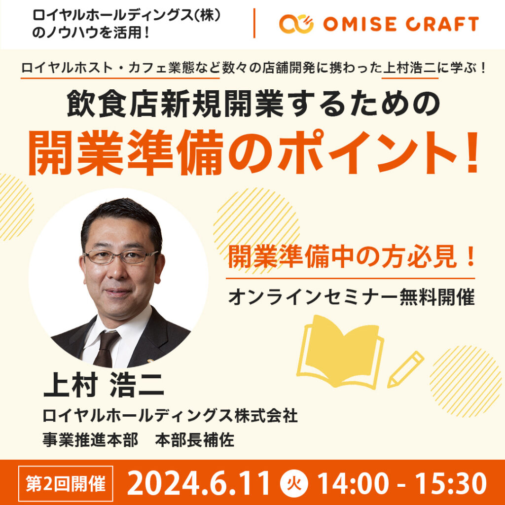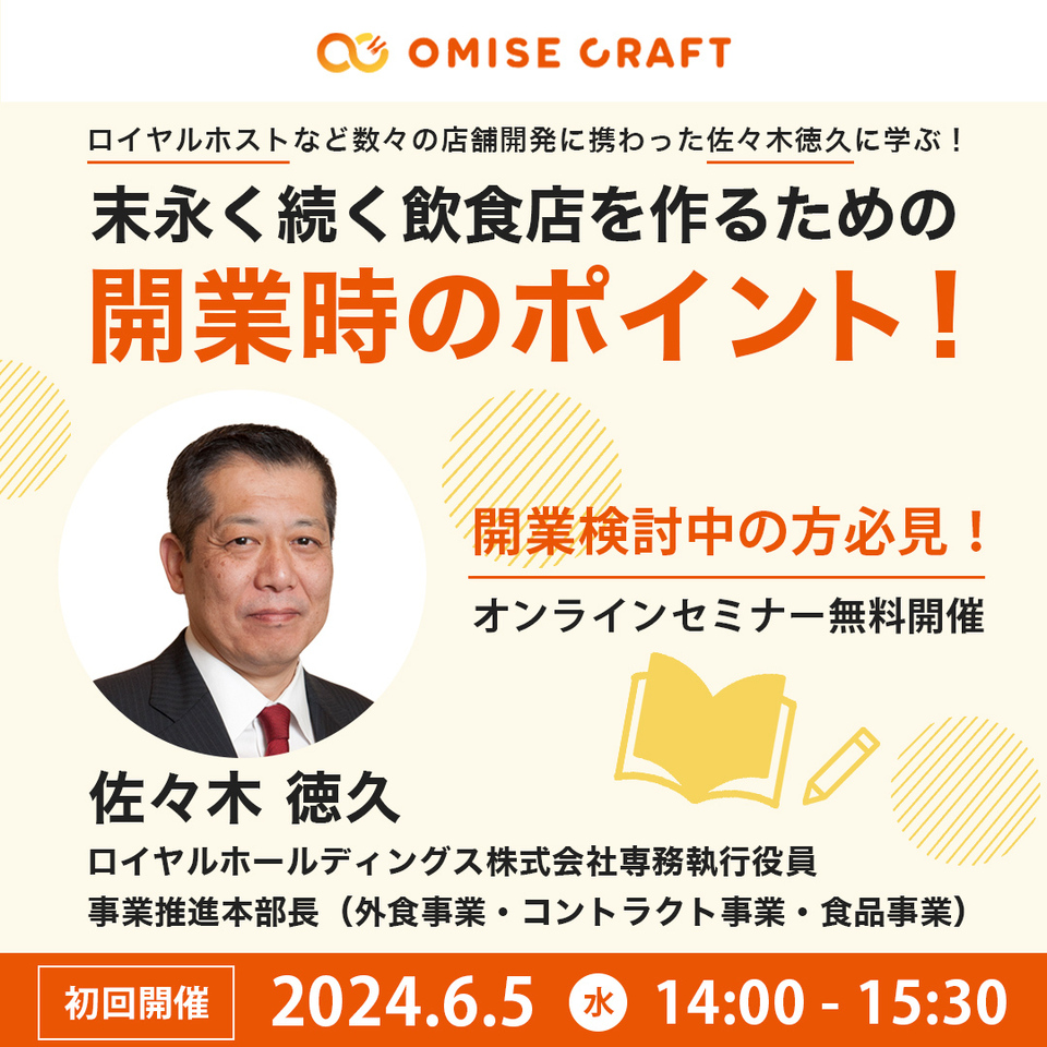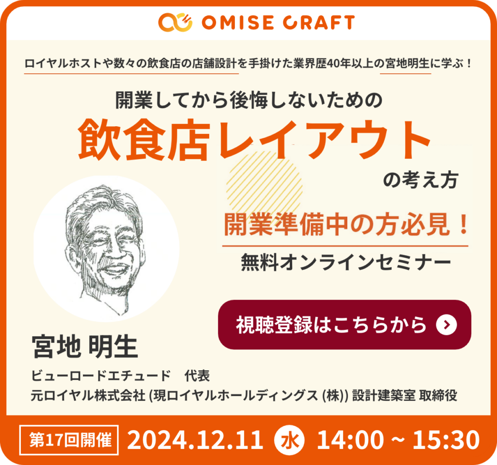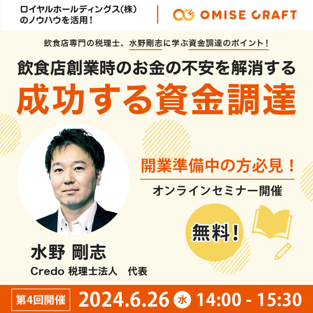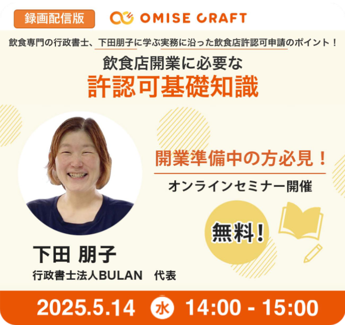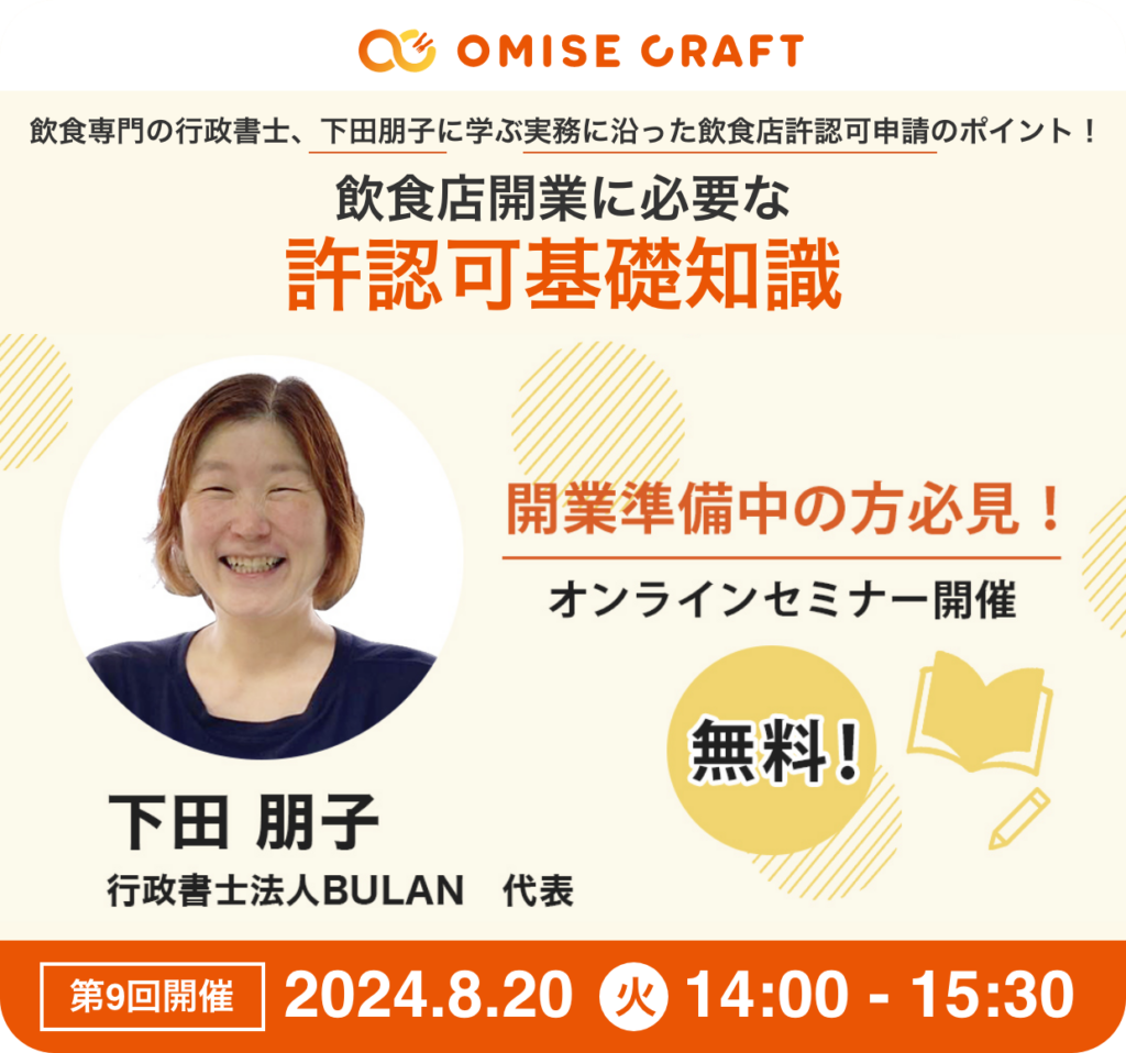 オミセクラフトでは飲食店開業に役立つセミナーを随時開催中!お申込みをお待ちしております。