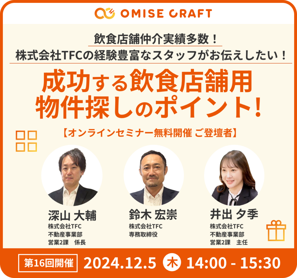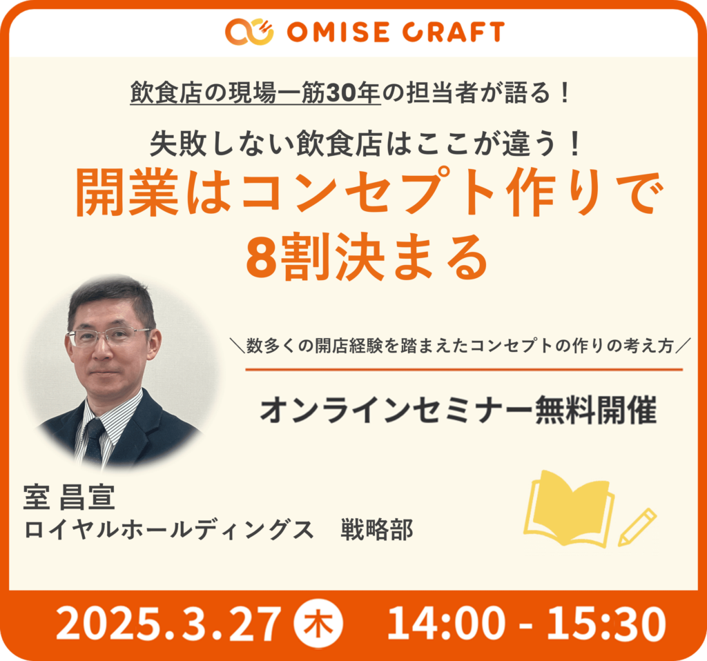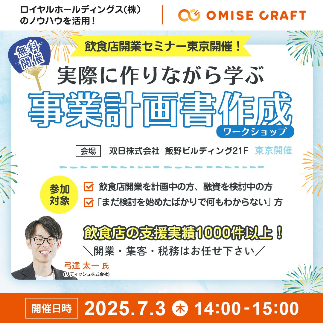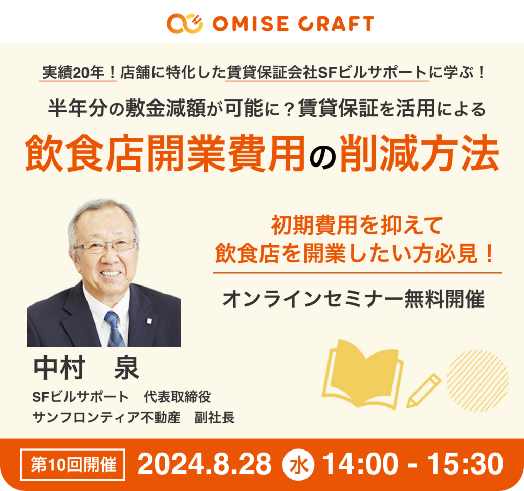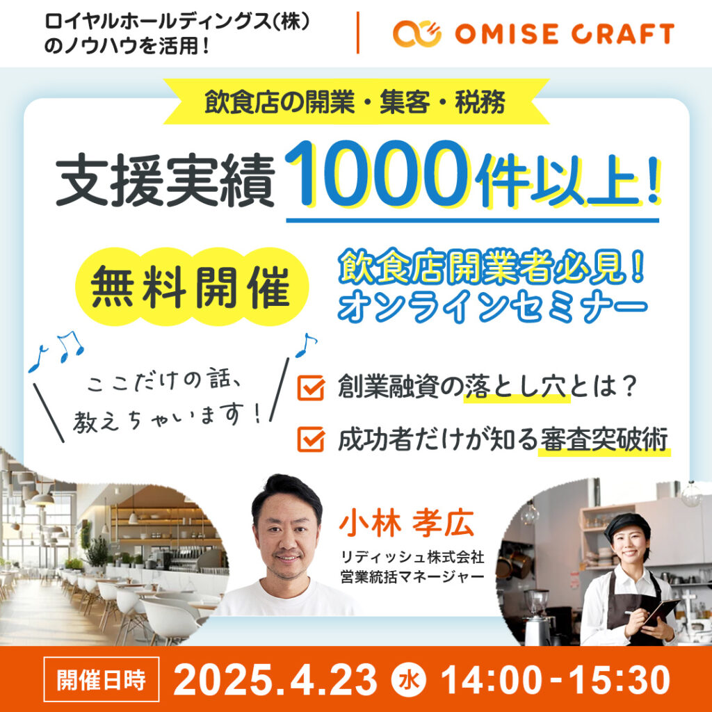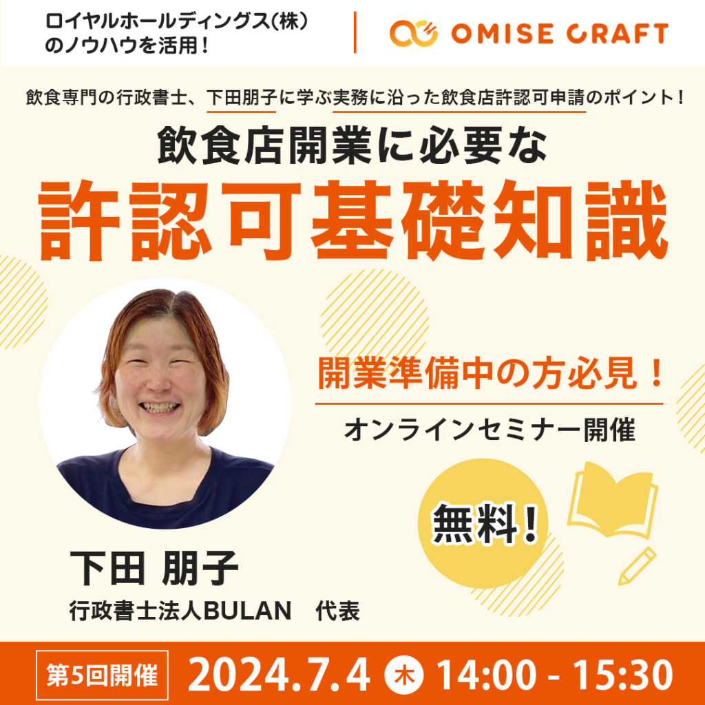 オミセクラフトでは飲食店開業に役立つセミナーを随時開催中!お申込みをお待ちしております。