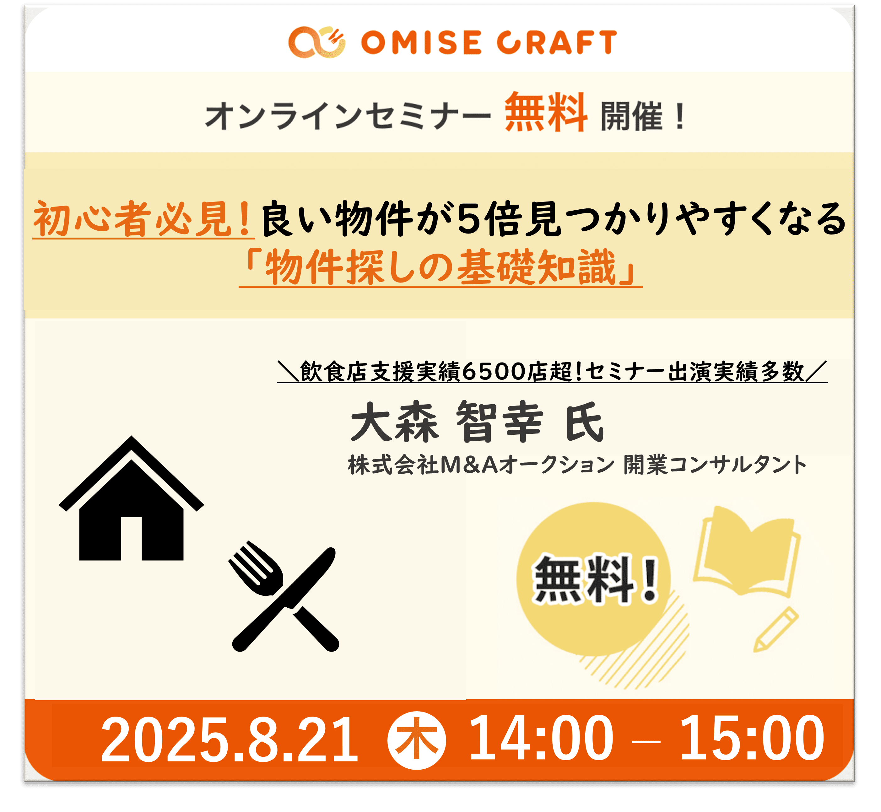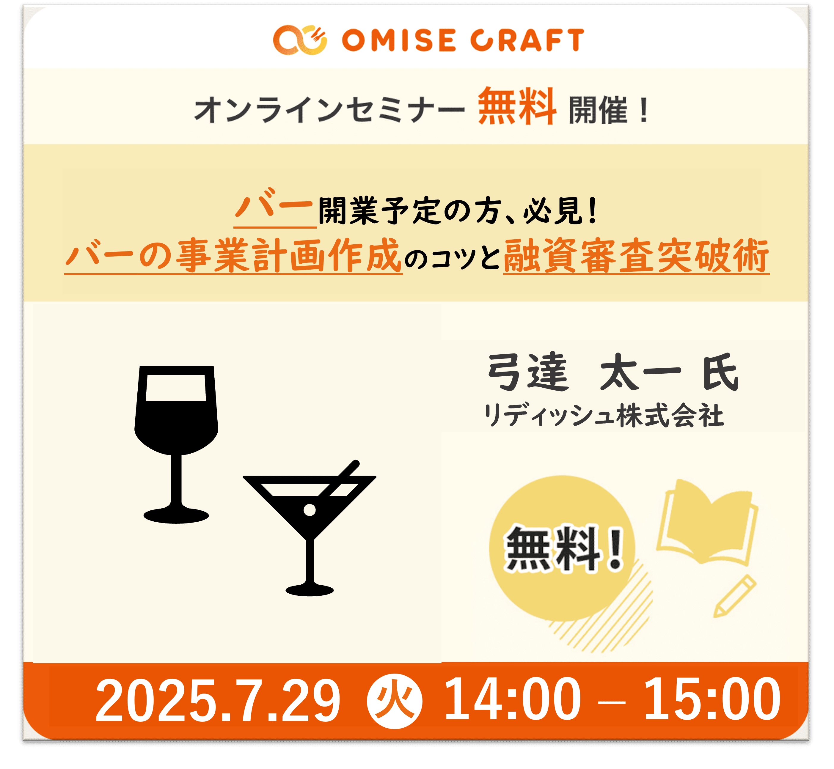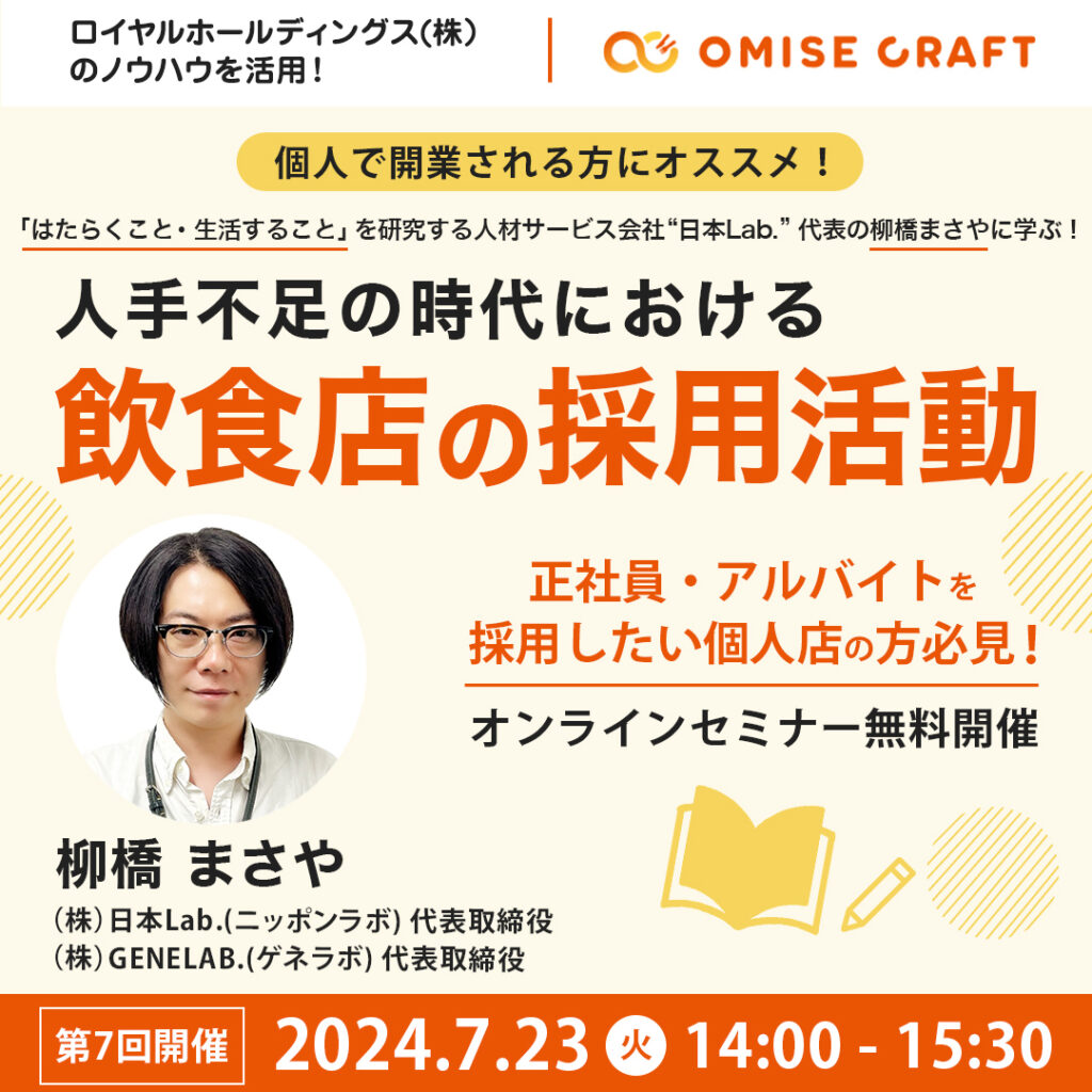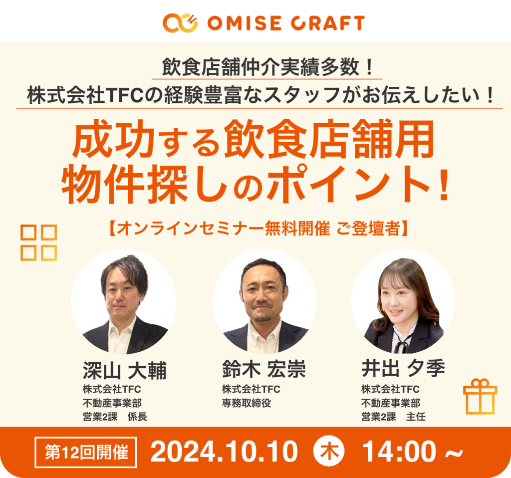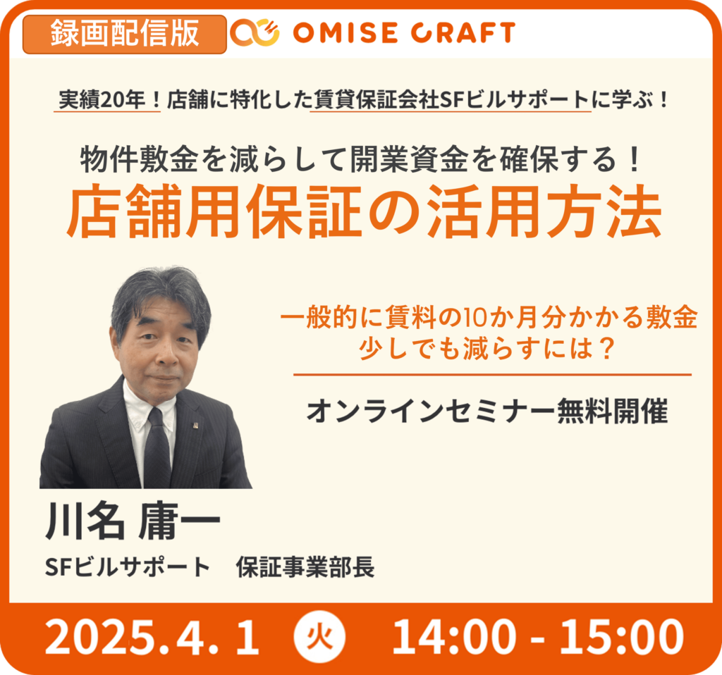 オミセクラフトでは飲食店開業に役立つセミナーを随時開催中!お申込みをお待ちしております。