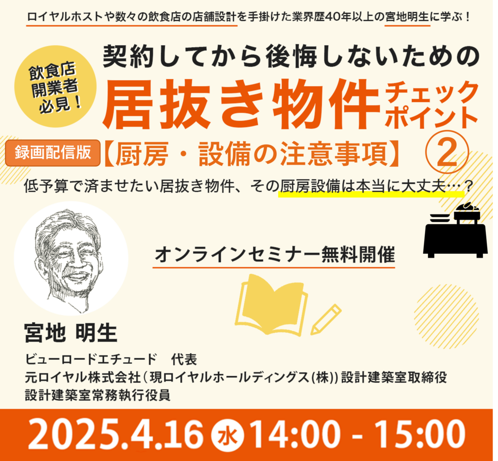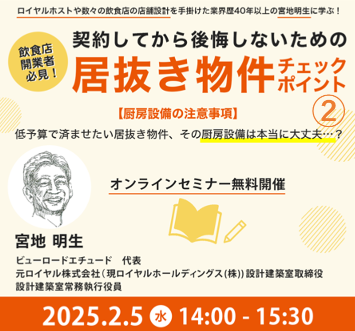 【録画配信】契約してから後悔しないための居抜き物件チェックポイント② 厨房・設備の注意事項