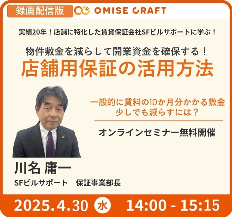 【録画配信】物件敷金を減らして開業資金を確保する!店舗用保証の活用方法