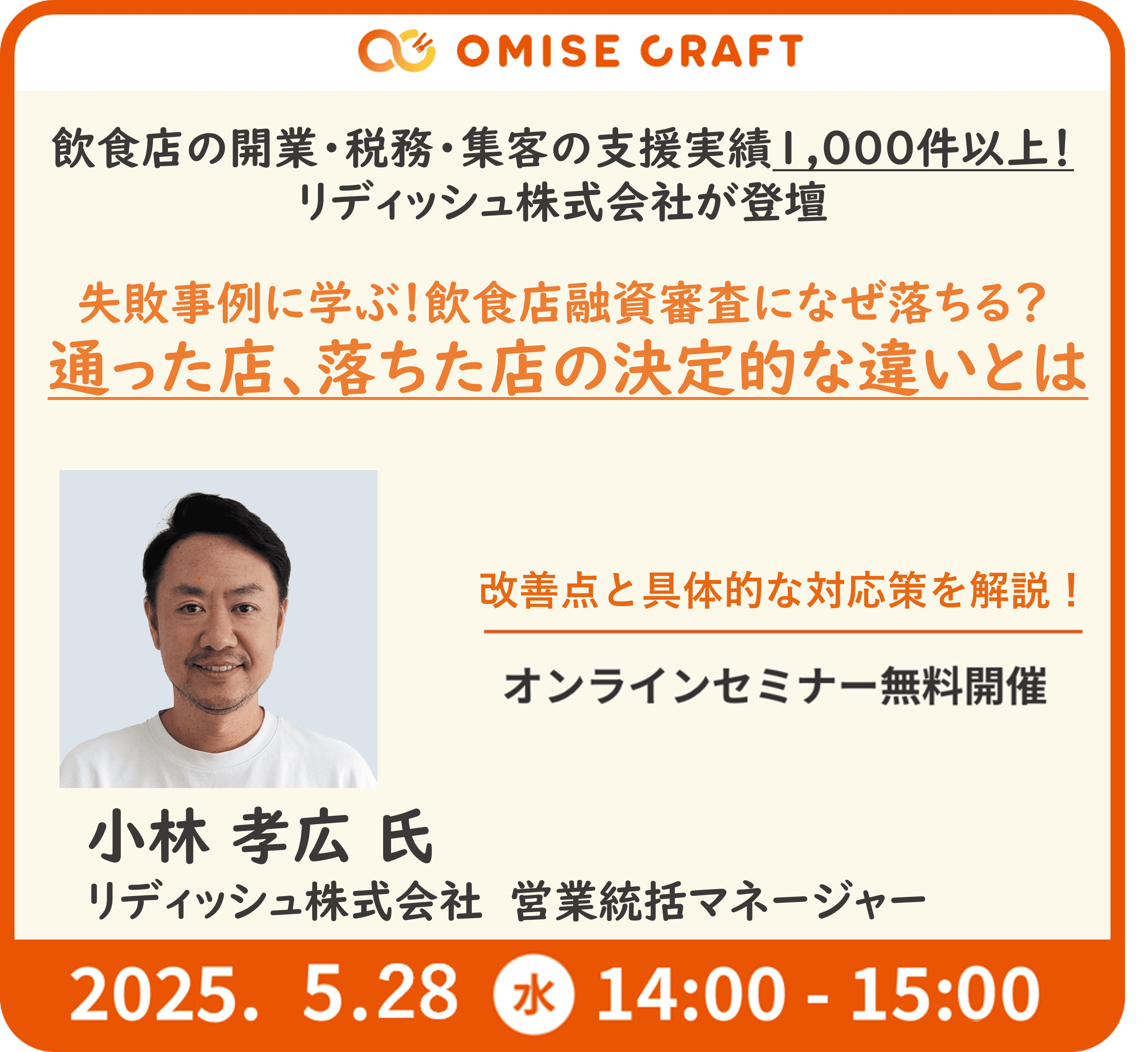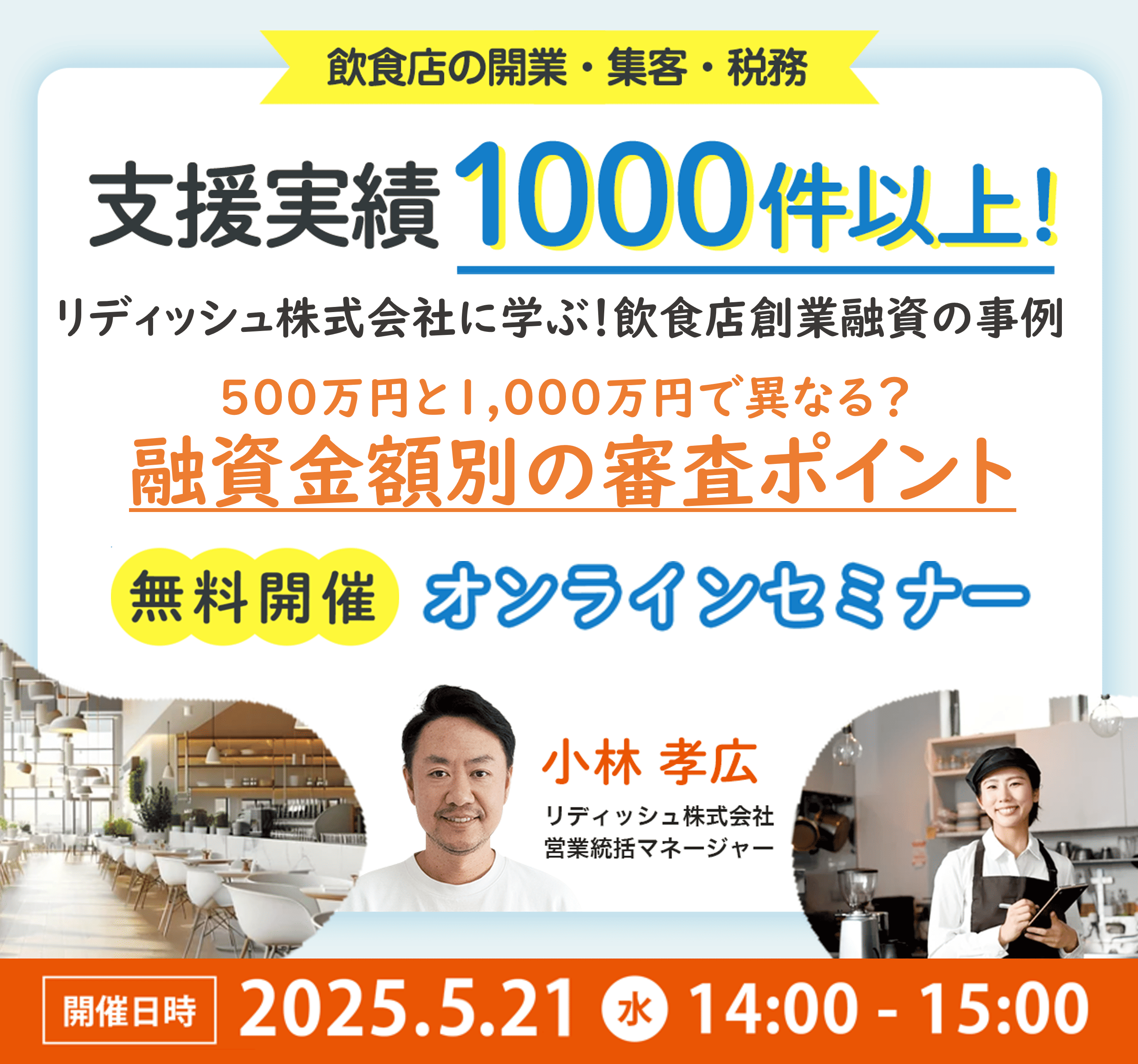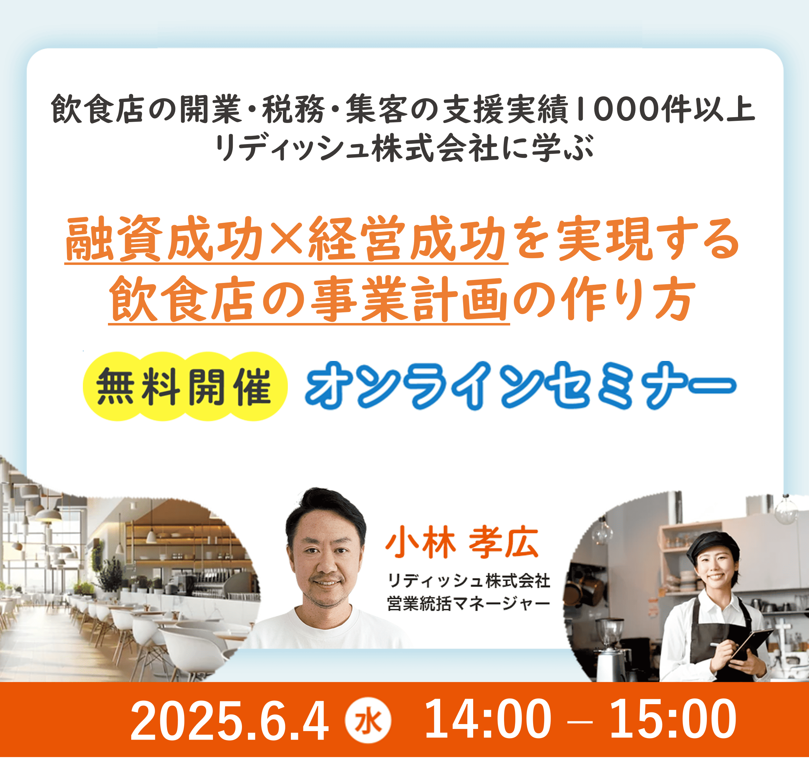 【リアルタイム開催!】飲食店の支援実績1000件以上のリディッシュに学ぶ 創業融資の落とし穴 ~成功者だけが知る審査突破術~